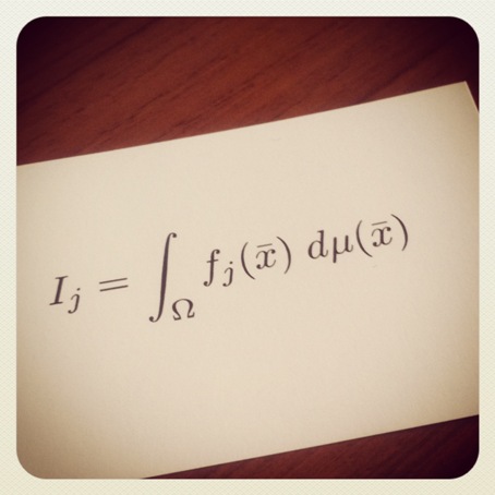 Name card I got from Syoyo-san (he gave a seminar about aobench.) I have no idea what this means, but to me this looks so cool as a design! (no name or anything, just this equation!)