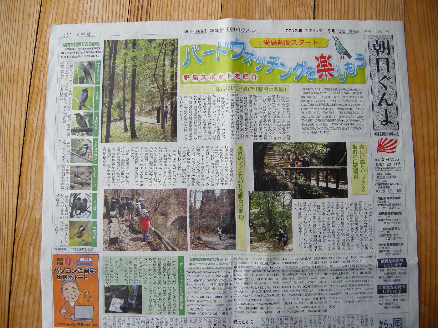 5/10発行の「朝日ぐんま」では、愛鳥週間(4/10~16)に合わせて、「ぐんまの野鳥スポット」を取材してきました。